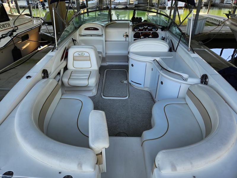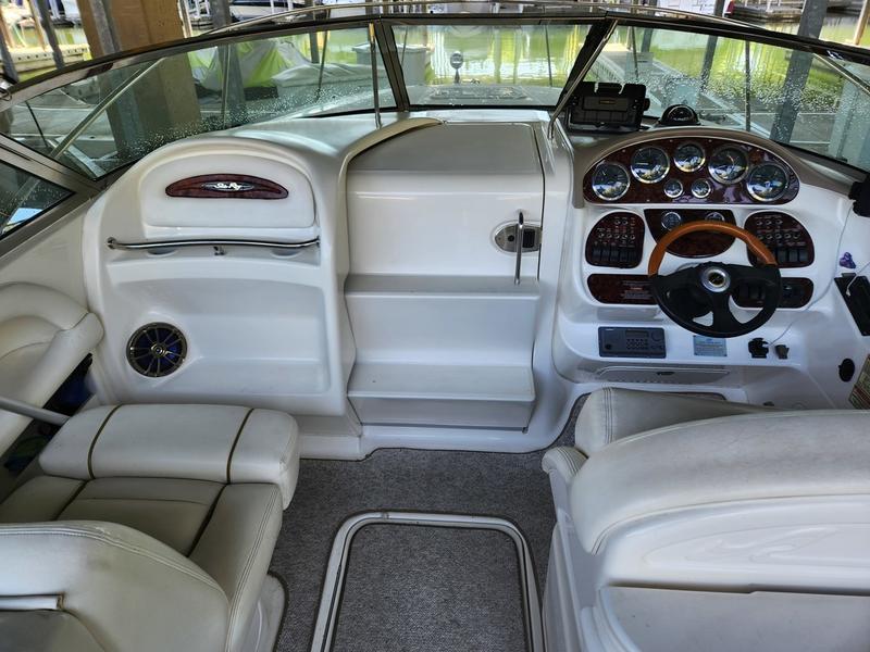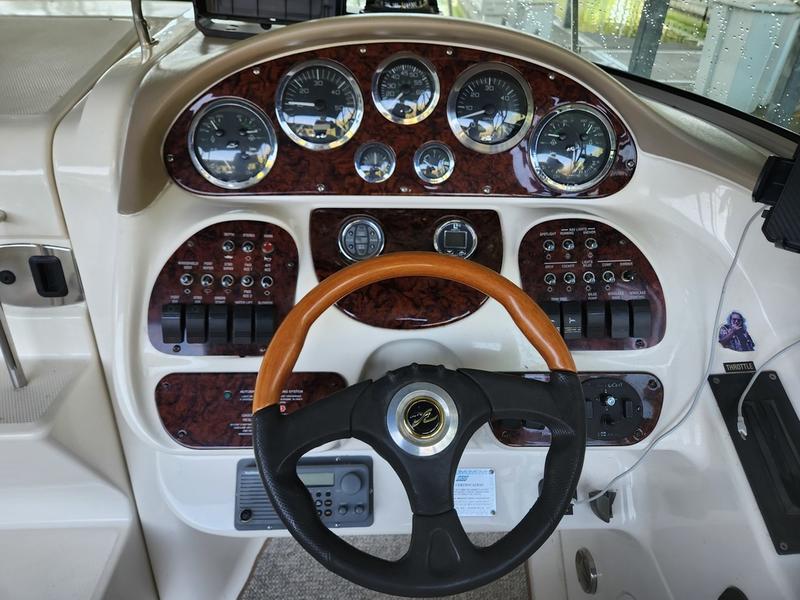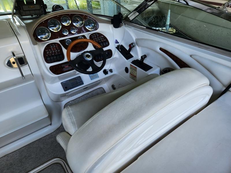 Perfect Boat for Lake Tahoe!! ...the 290 Sundeck is an incredible platform! The essence of versatility, comfort and performance at it's finest. Large enough to cut through big water with ease and tons of deck space and storage to enjoy a full day on the water with family and guests. 724 original hours on TWIN Mercury Marine 6.2 MX MPI's (640 total horsepower) W/ CAPTAINS CALL EXHAUST, Mercruiser Bravo III outdrives, cockpit cover triple axle trailer and much, much more. No more soft touch switch panels that are incredibly unreliable. Two years ago she had a major upgrade from Flounder Pounder marine using dependable Carling rocker switches. At the time this was over a $7,000 upgrade and it looks much better! The Sea Ray 290 SUNDECK is a versatile and elegant boat that combines comfort, performance, and style. With its sleek design and spacious layout, this boat is perfect for a day on the water with family and friends. Measuring at 29 feet in length, the 290 SUNDECK offers abundant space for socializing and relaxing. The bow seating area is designed with comfort in mind, featuring plush cushions and cup holders for your convenience. The aft cockpit provides additional seating and a convenient wet bar, allowing you to entertain effortlessly. Equipped with a powerful TWIN Mercury Marine 6.2 MX MPI'S, the 290 SUNDECK delivers excellent performance and speed, making it ideal for watersports and cruising. The integrated swim platform with a ladder allows for easy access to the water, while the extended cockpit sunshade provides ample shade when needed. Inside the cabin, you will find a spacious head compartment with a sink and toilet, providing privacy and convenience during longer trips on the water. The 290 SUNDECK also comes with a premium sound system, ensuring that your favorite tunes are always playing. Overall, the Sea Ray 290 SUNDECK is a luxurious and versatile boat that offers comfort, style, and performance – perfect for those who seek unforgettable experiences on the water. The Sea Ray 290 SUNDECK is a ve