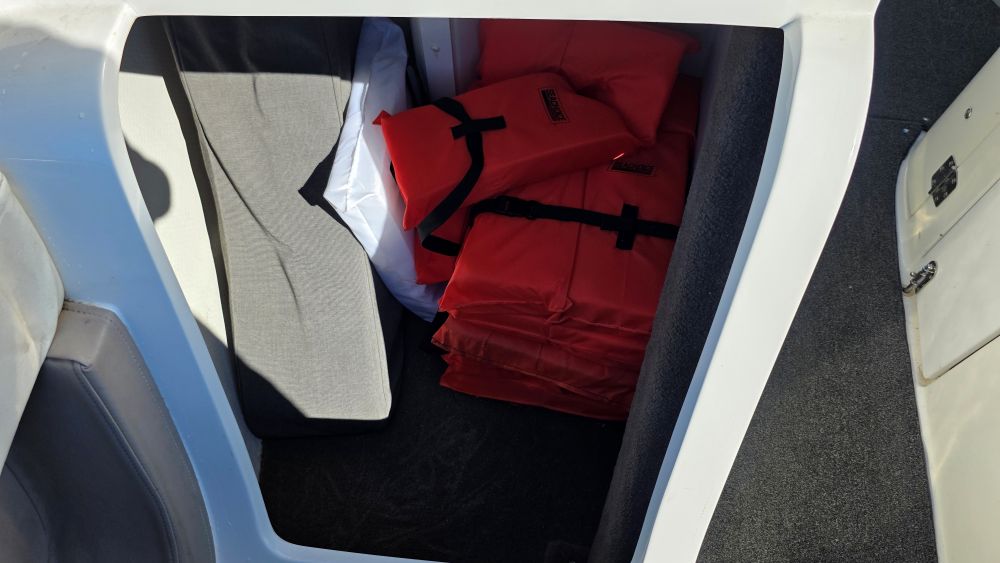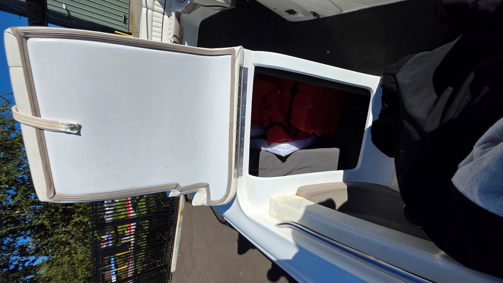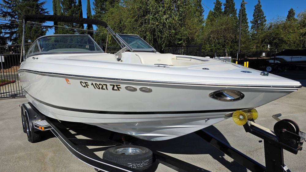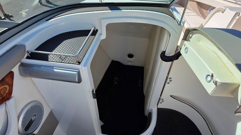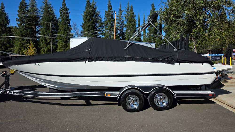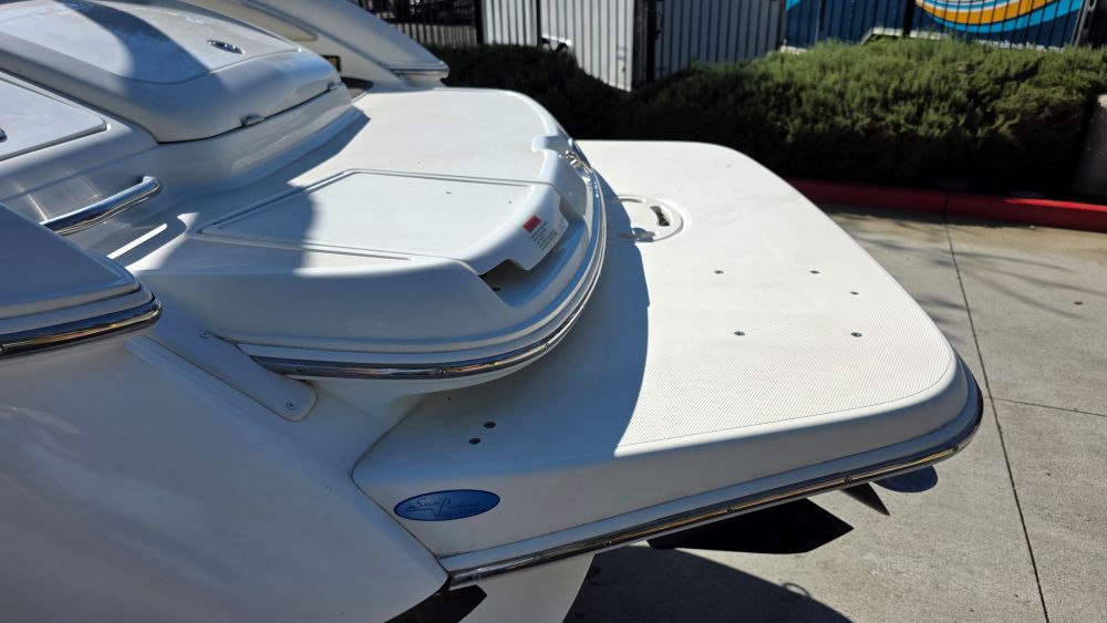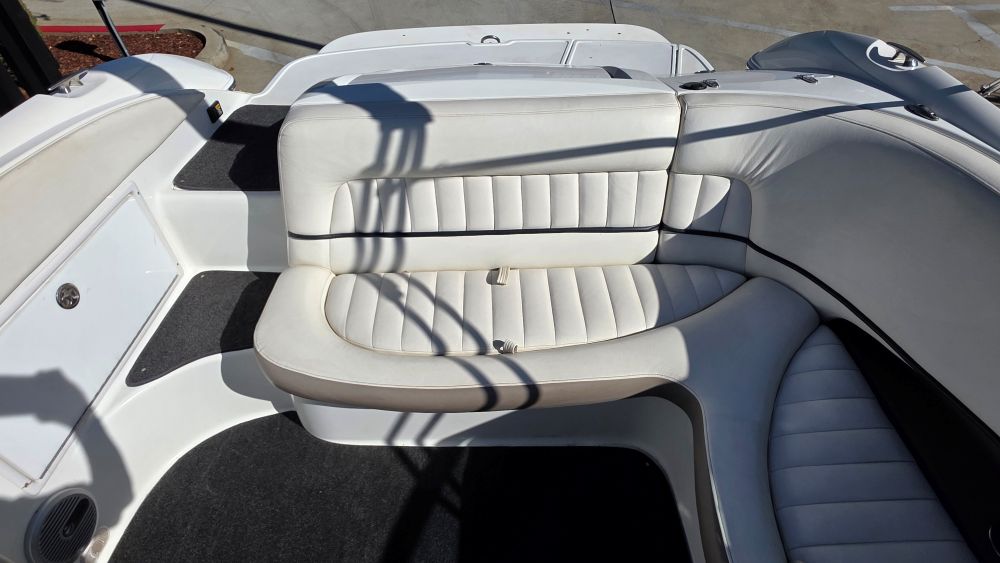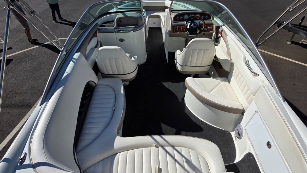 Mercruiser 496 MAG MPI 375hp (serviced May of this year), Mercruiser Bravo III Duo Prop. w/stainless steel props, transom trim switch, dual batteries w/perko switch, bimini top, custom mooring cover w/bimini top cut outs, large stainless steel docking lights, oversized extended swim platform w/boarding ladder, easy access transom storage locker for boards, transom wet storage locker, awesome oversized cockpit dinette table that stores in floor, upgraded sound system w/6 speakers, 262 style woodgrain dash with electronic compass, depth finder , air/water temperature gauge, fiberglass liner w/snap out carpet, enclosed head/storage compartment, bow walk through door, swivel captain’s chairs w/bolsters, custom tandem axle trailer w/brakes & spare tire!