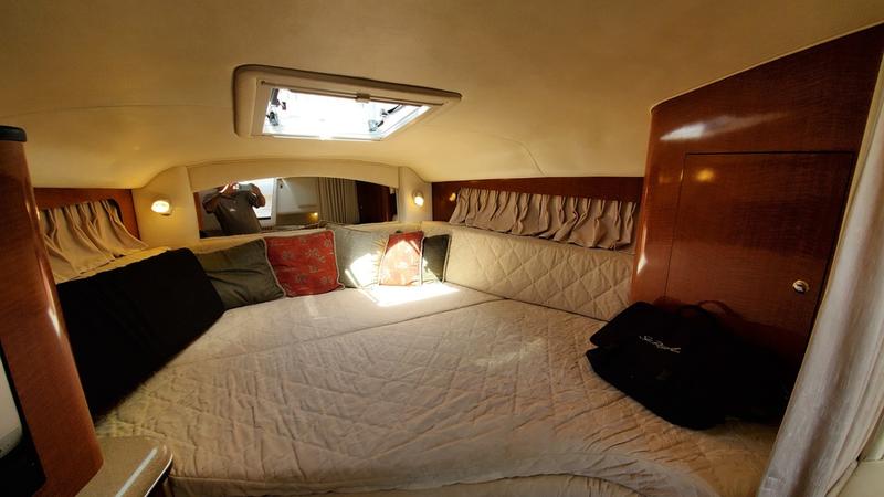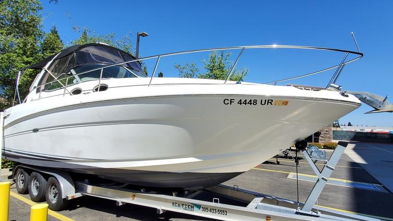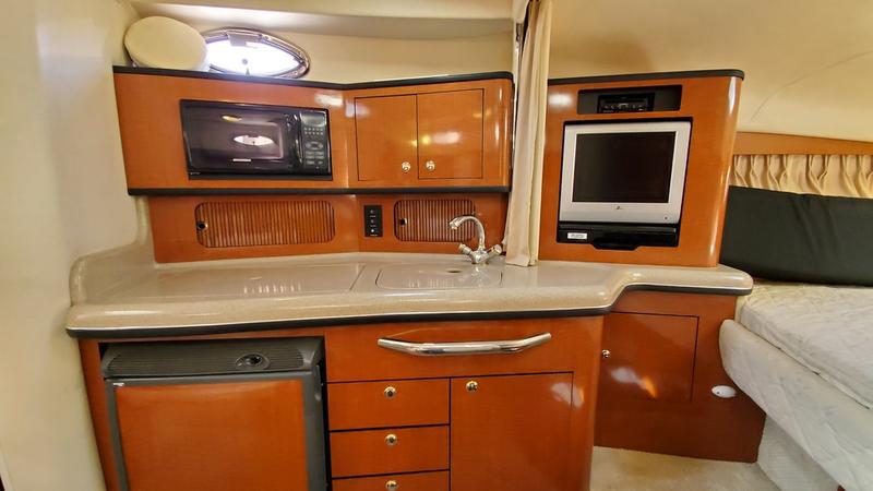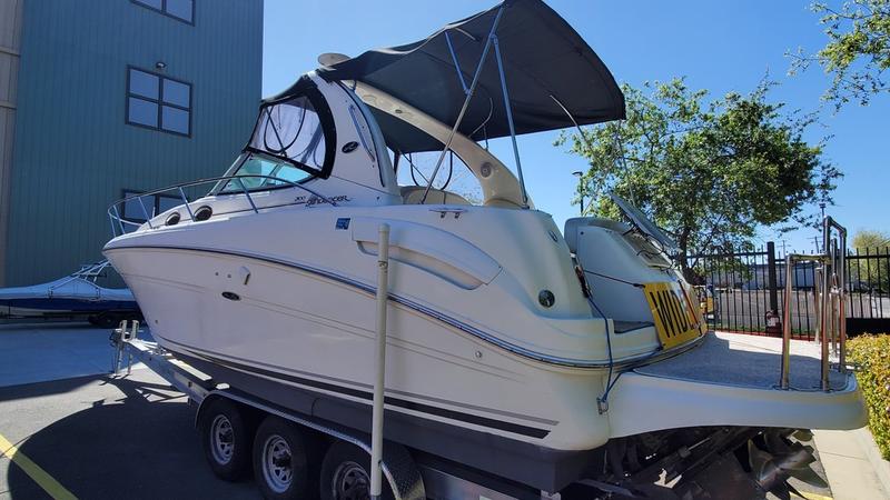....just in this boat is gorgeous more detailed information soon!! Interior like new, exterior excellent and loaded with T-350 MAG MPI's (220 hours), NEW GPS/Fishfinder, Remote Spotlight, Windlass, Generator, A/C & Heat, 2018 Triple Axle Trailer, So Much More! Everyone needs a hideaway. A special place that's far from the deadline and the rush hour, not to mention the crowd. Presenting a very special place that's yours, and yours alone: the new Sea Ray 300 Sundancer. Take a long look at it. It?s not too big. It's not too small. It's just right. So, whenever you want, you can take off in this boat and wallow in luxury all by yourself. Or you can invite some friends and have a sleepover for six.