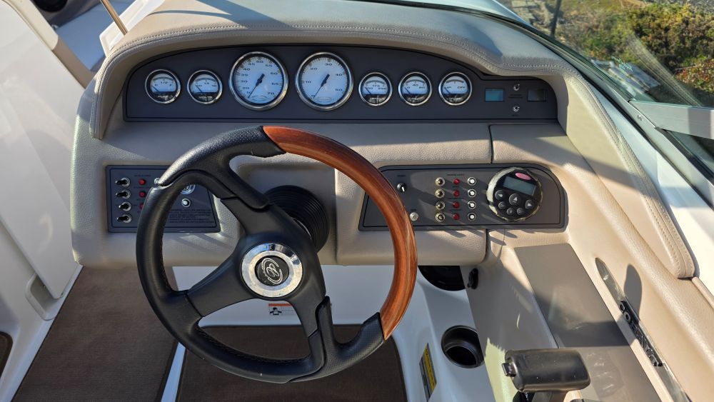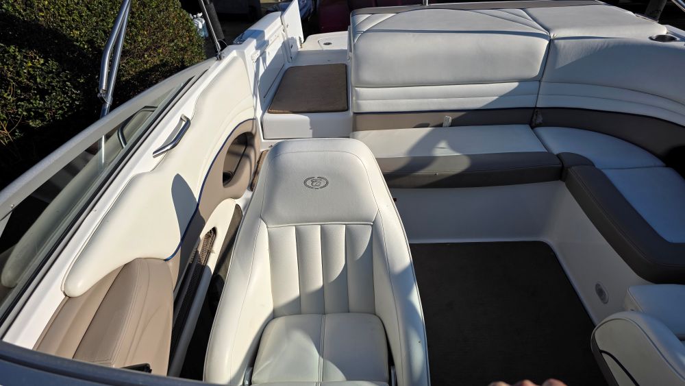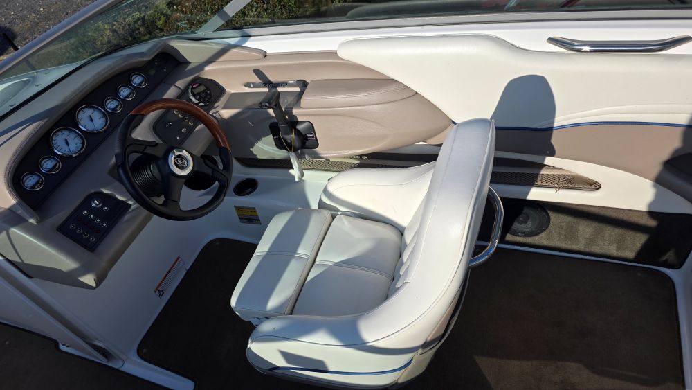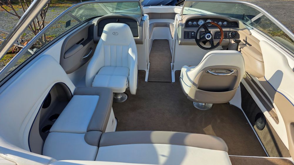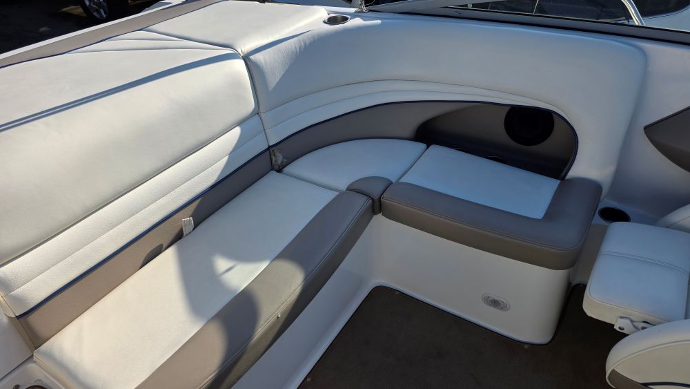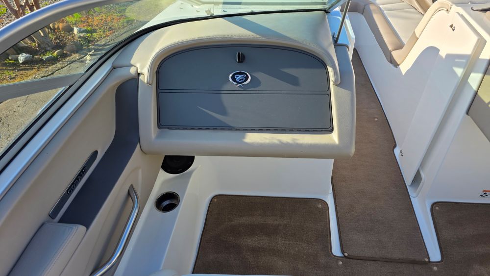 She's a beautiful, rare, Cobalt 226! Featuring classic navy blue graphics she screams elegance, class and begs to be driven. The gelcoat is in excellent condition as is all of the upholstery! The 226 is one of the sleekest and most successful models Cobalt ever built and their fastest hull to this day. Perfect for Lake Tahoe or similar elevations. Boarding is almost automatic with a large factory integrated platform and a deep starboard walk thru transom. Once inside you'll experience the essence of Cobalt with attention to detail second to none and a spacious, functional cockpit with L shape seating and more storage than you'll need. Features & equipment include but are not limited to: a powerful freshwater cooled Volvo 8.1 GI DP 375 HP (496 big block) w/270 original hours, Volvo DP (duo prop) outdrive w/stainless steel props, oversized extended swim platform, transom gate, 6 Speaker upgraded CD sound system w/hard wired driver remote. She sounds very nice! Large stainless steel docking lights, bimini top, bow cover, cockpit cover, full mooring cover, aft walk thru filler cushions, bow walk thru doors, fiberglass liner with plush stone snap out carpet, dual batteries w/3 position switch, electric motor box actuator, depth finder, air temperature gauge, water temperature gauge, custom tandem axle trailer w/brakes, spare tire & side guides!