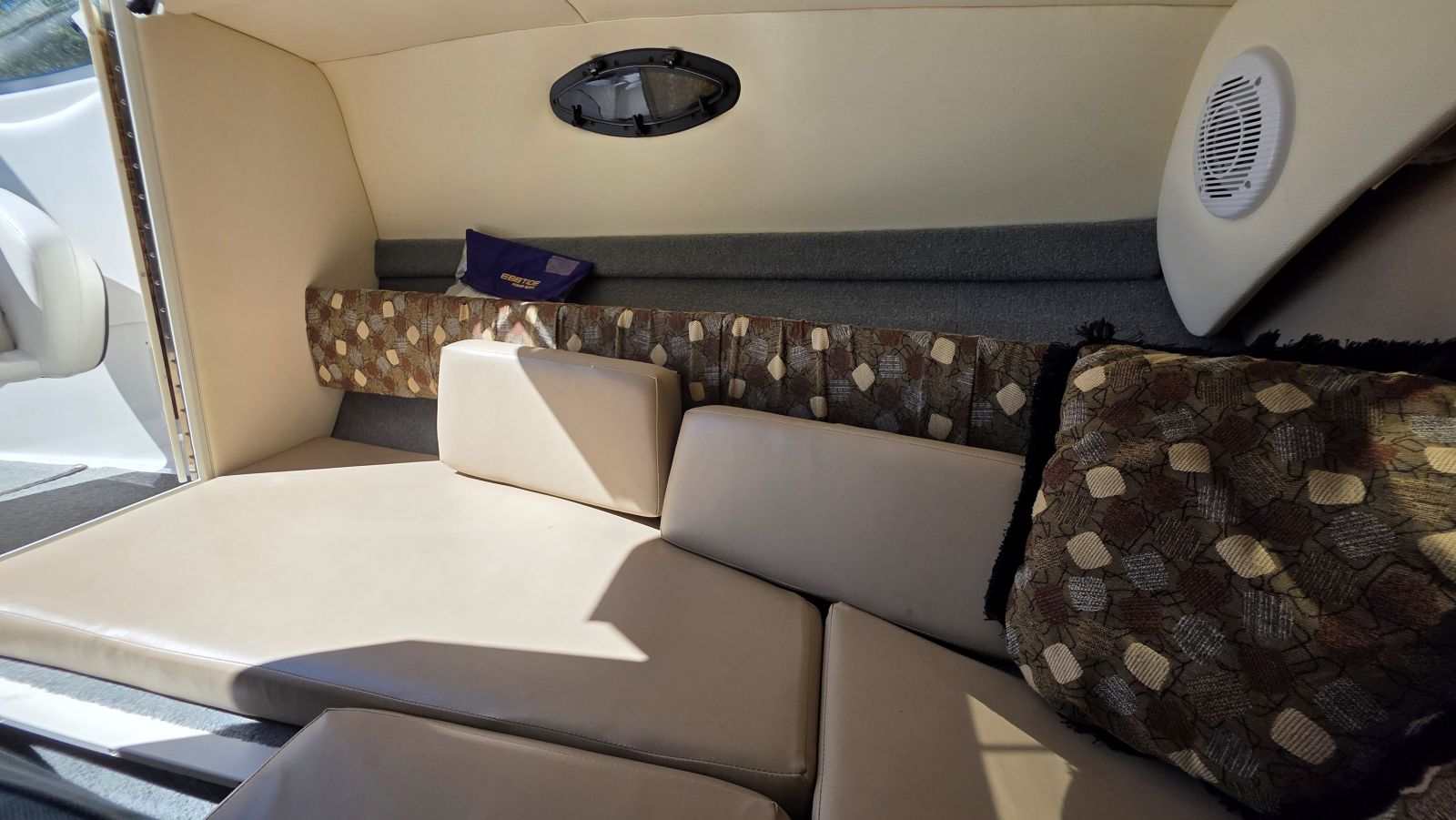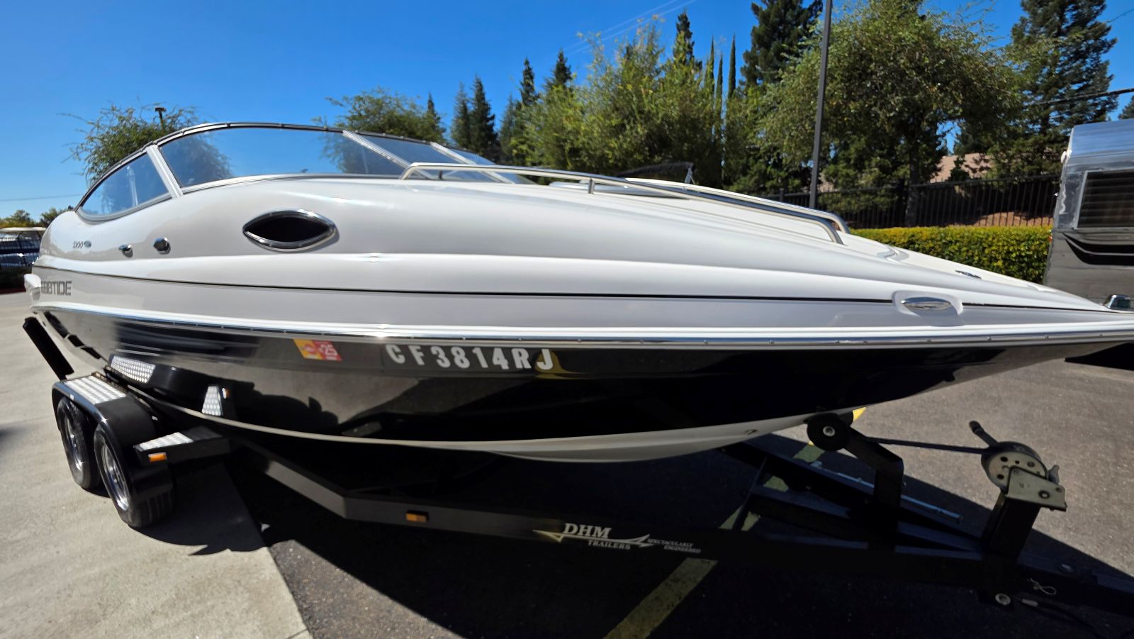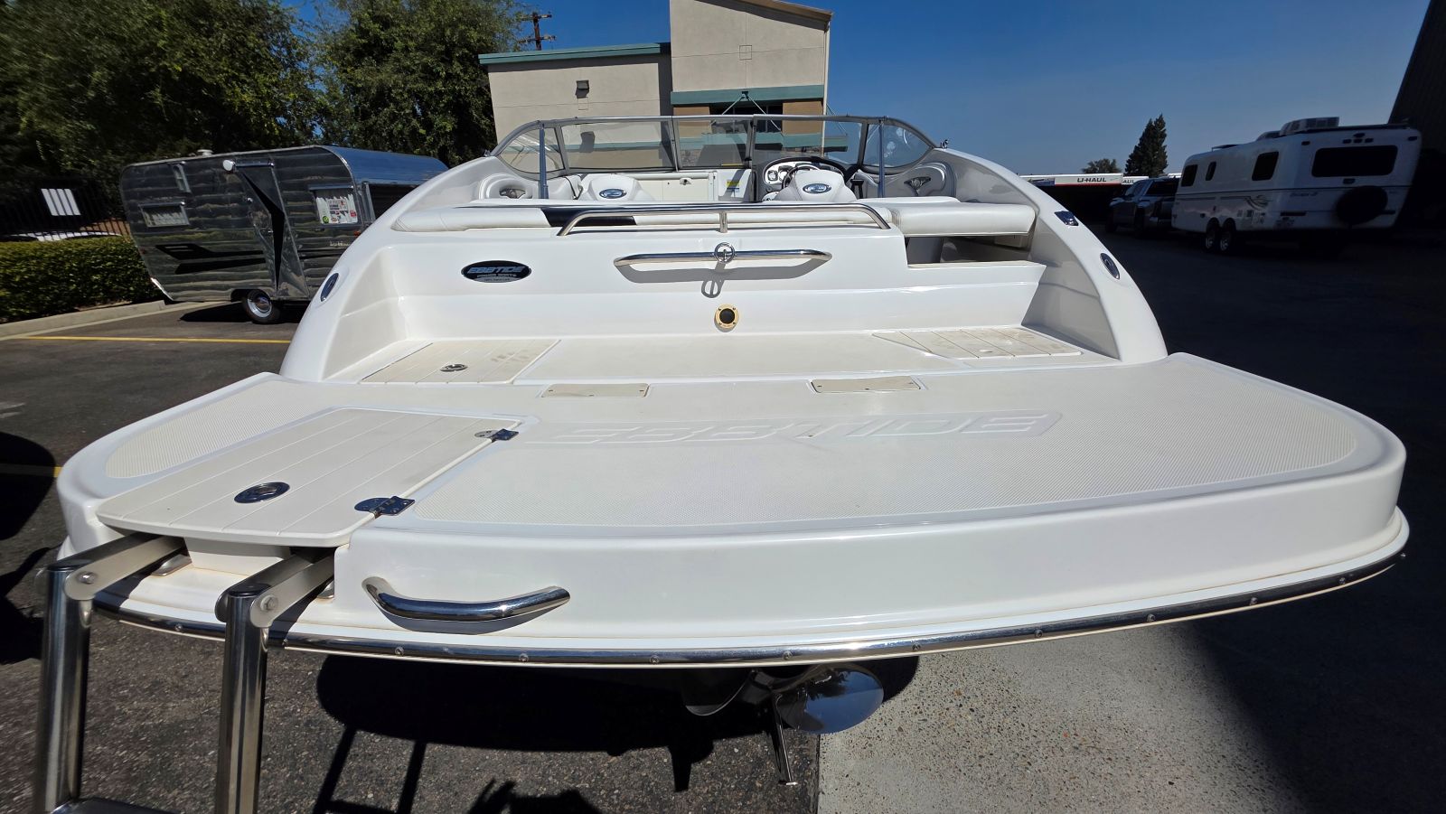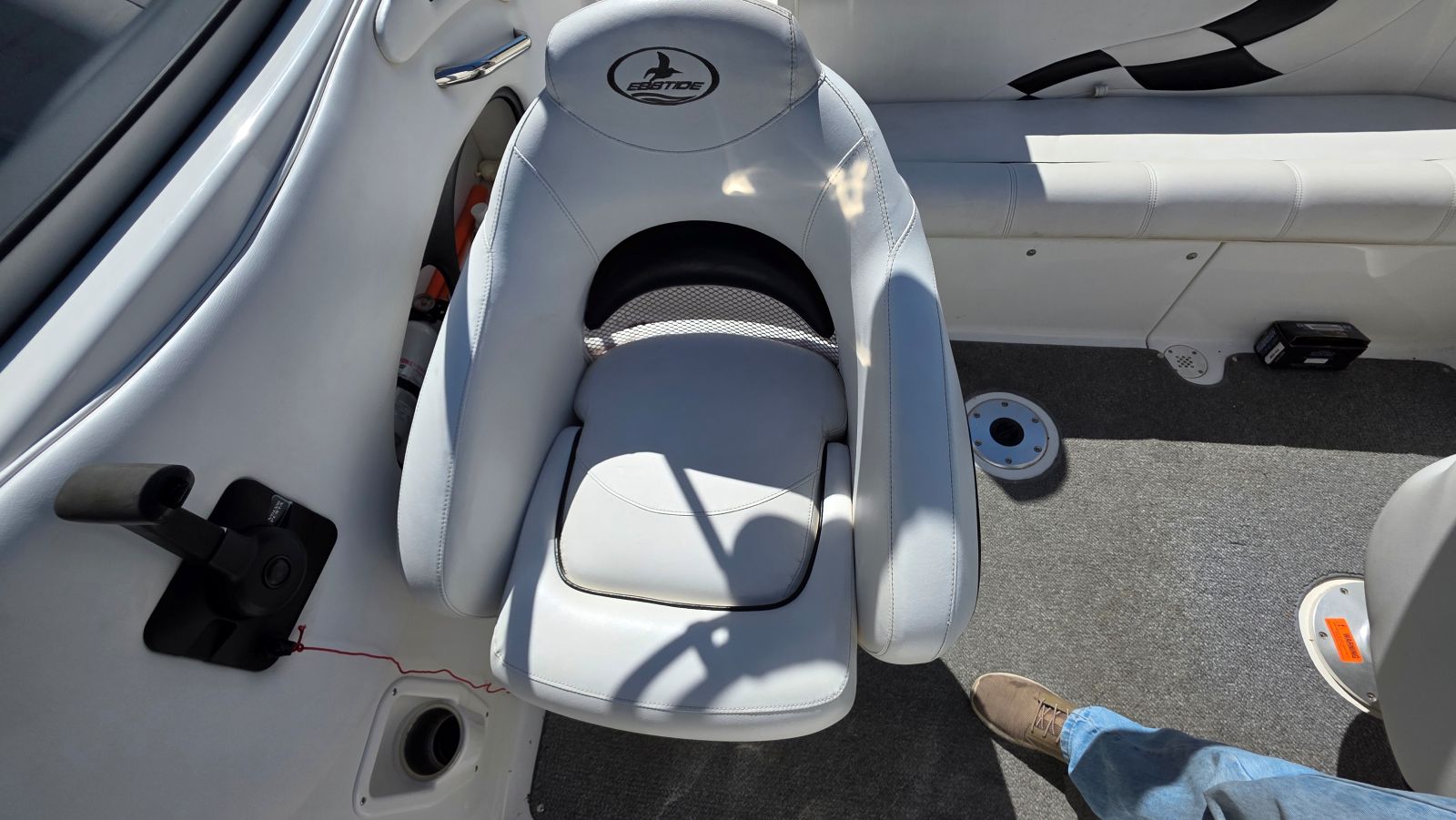 If you’re new to boating Ebbtide Boats are arguably the nicest boat, you may not have heard of. If you are a boater, well, you know this is a high-quality boat. Very well-built Ebbtides construction takes a back seat to no other manufacturer. One of a handful of sportboats using 100% hand layup which is how you achieve maximum strength in a hull. This 2100SS Sport Cuddy is in superb condition beautifully maintained by a very caring owner. Indoor stored with a mooring cover on her since purchase she is virtually flawless. Her oversized extended swim platform and starboard walk-through transom make her effortless to board and extends the life of the upholstery. The cockpit features a rear bench seat w/storage under, large sun pad, (2) adjustable bucket seats w/flip bolsters and this is awesome. Large molded in steps and a walk-through windshield to safely access the bow area. The cabin features a v-berth, nice fabrics and a porta potty. Features & equipment include but are not limited to; Mercruiser 5.0L MPI w/ automatic fire extinguisher, Mercruiser Alpha outdrive, bimini top, mooring cover in good condition, oversized extended platform w/boarding ladder, dedicated anchor locker, pull up cleats, all stainless-steel hardware, Kenwood stereo w/aux. input, tilt wheel, depth finder, dinette table base, cabin portlights and tandem axle trailer in excellent condition.