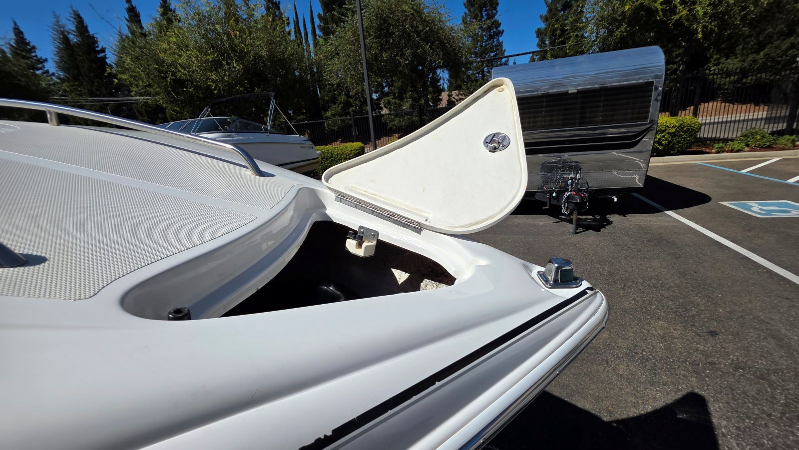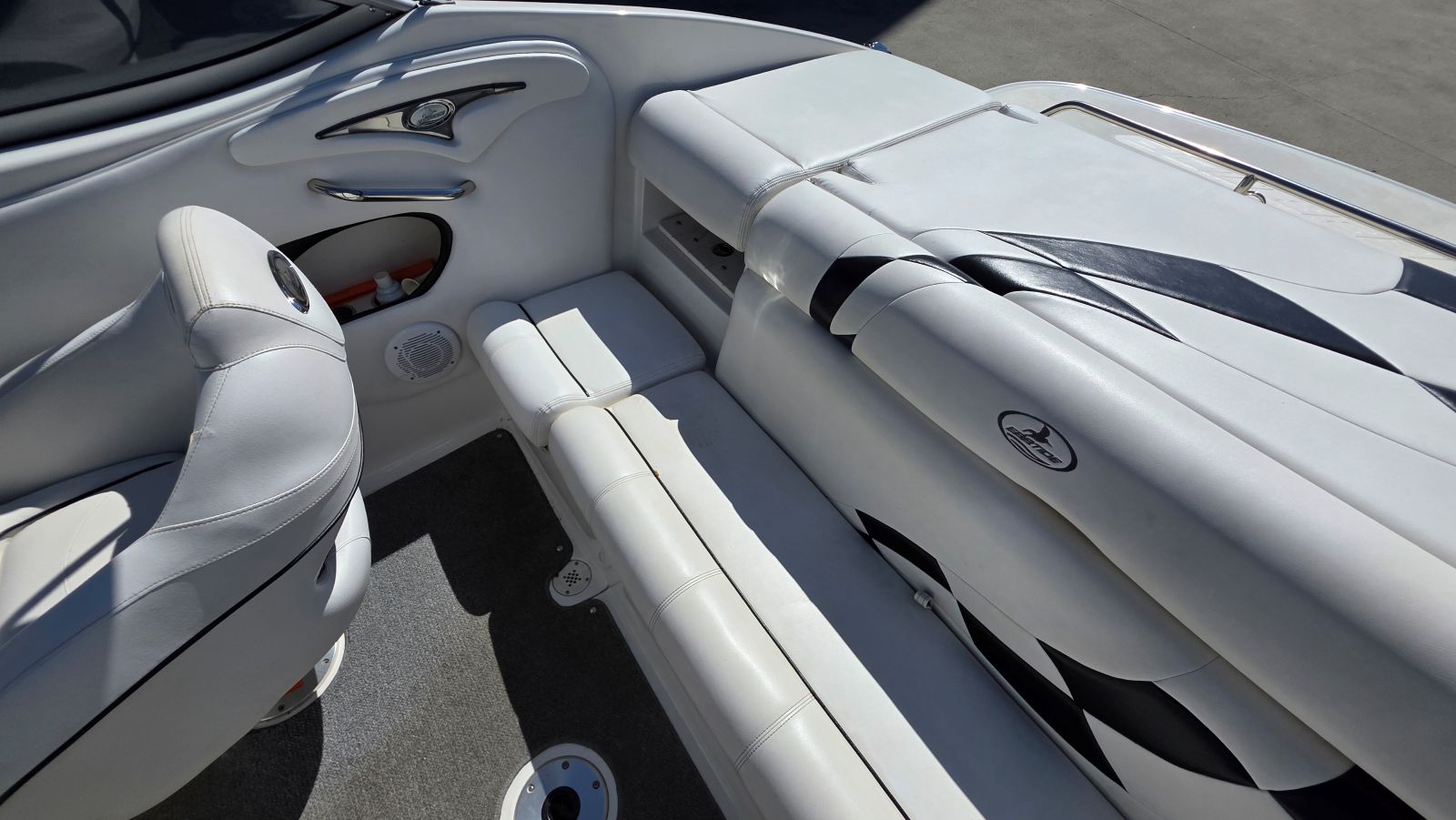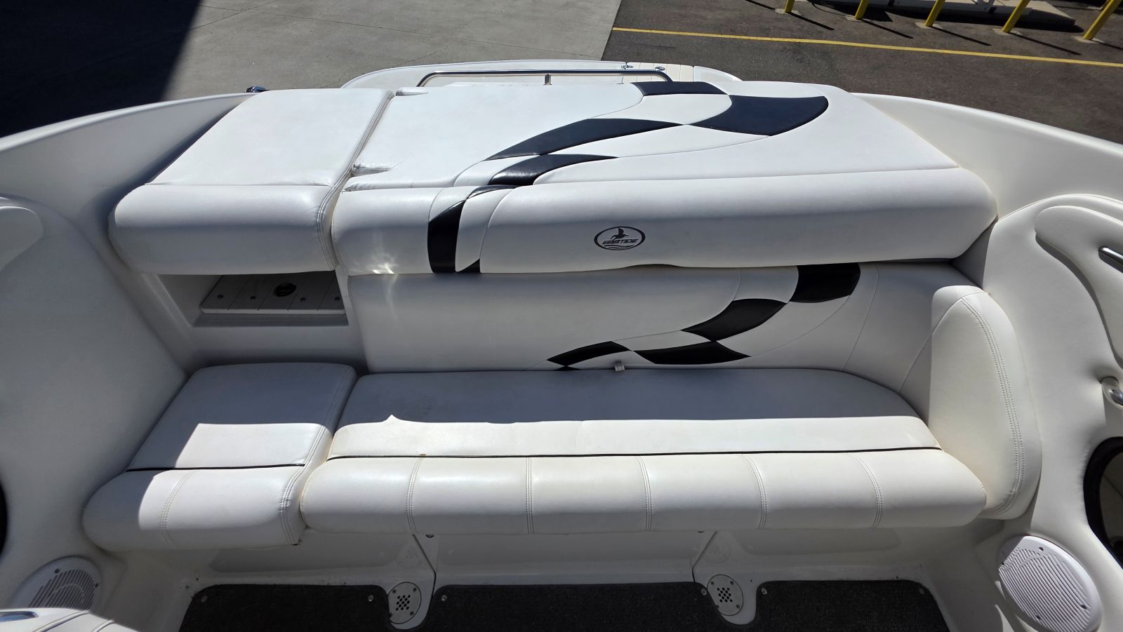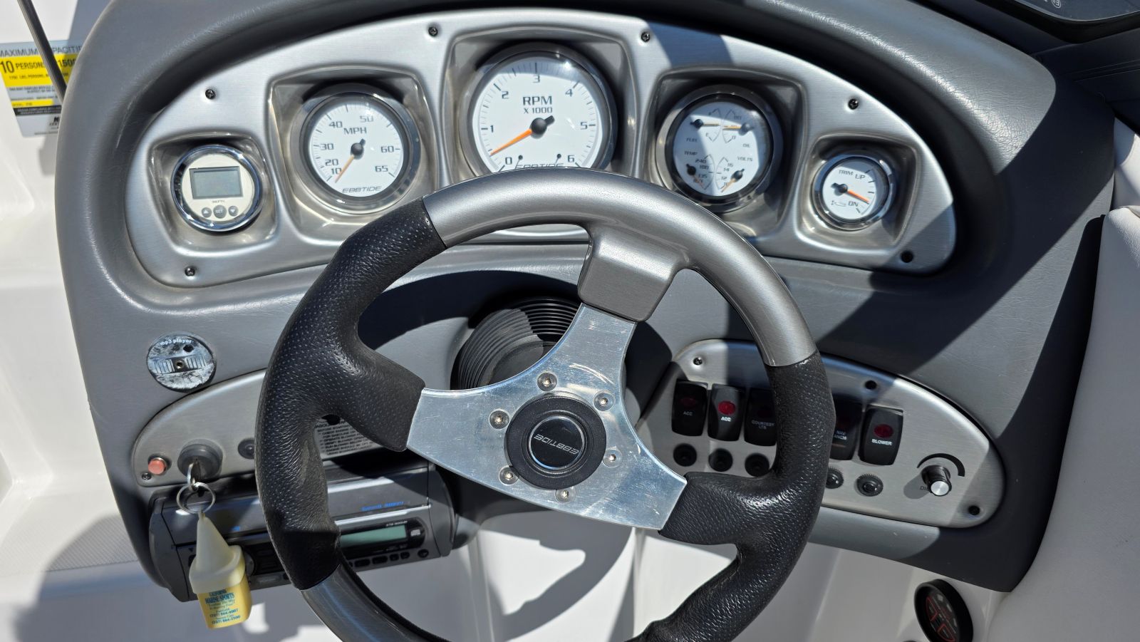 If you’re new to boating Ebbtide Boats are arguably the nicest boat, you may not have heard of. If you are a boater, well, you know this is a high-quality boat. Very well-built Ebbtides construction takes a back seat to no other manufacturer. One of a handful of sportboats using 100% hand layup which is how you achieve maximum strength in a hull. This 2100SS Sport Cuddy is in superb condition beautifully maintained by a very caring owner. Indoor stored with a mooring cover on her since purchase she is virtually flawless. Her oversized extended swim platform and starboard walk-through transom make her effortless to board and extends the life of the upholstery. The cockpit features a rear bench seat w/storage under, large sun pad, (2) adjustable bucket seats w/flip bolsters and this is awesome. Large molded in steps and a walk-through windshield to safely access the bow area. The cabin features a v-berth, nice fabrics and a porta potty. Features & equipment include but are not limited to; Mercruiser 5.0L MPI w/ automatic fire extinguisher, Mercruiser Alpha outdrive, bimini top, mooring cover in good condition, oversized extended platform w/boarding ladder, dedicated anchor locker, pull up cleats, all stainless-steel hardware, Kenwood stereo w/aux. input, tilt wheel, depth finder, dinette table base, cabin portlights and tandem axle trailer in excellent condition.