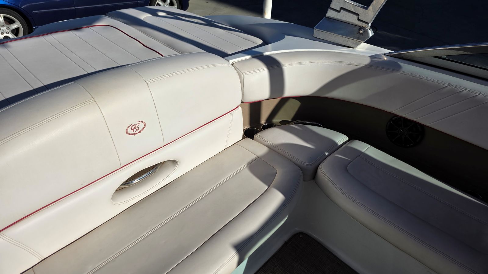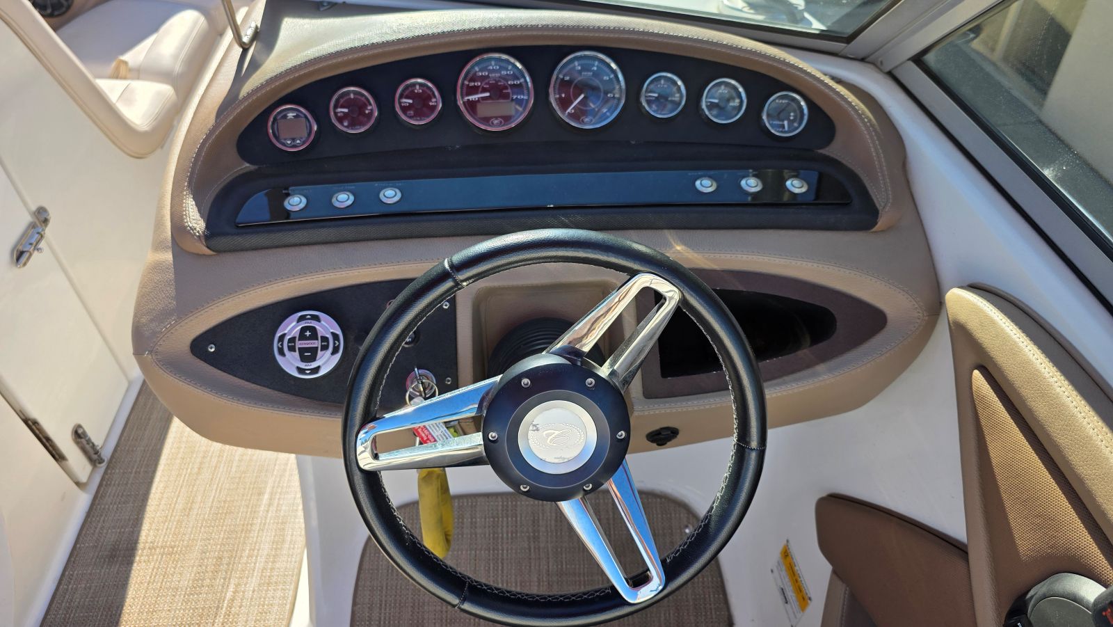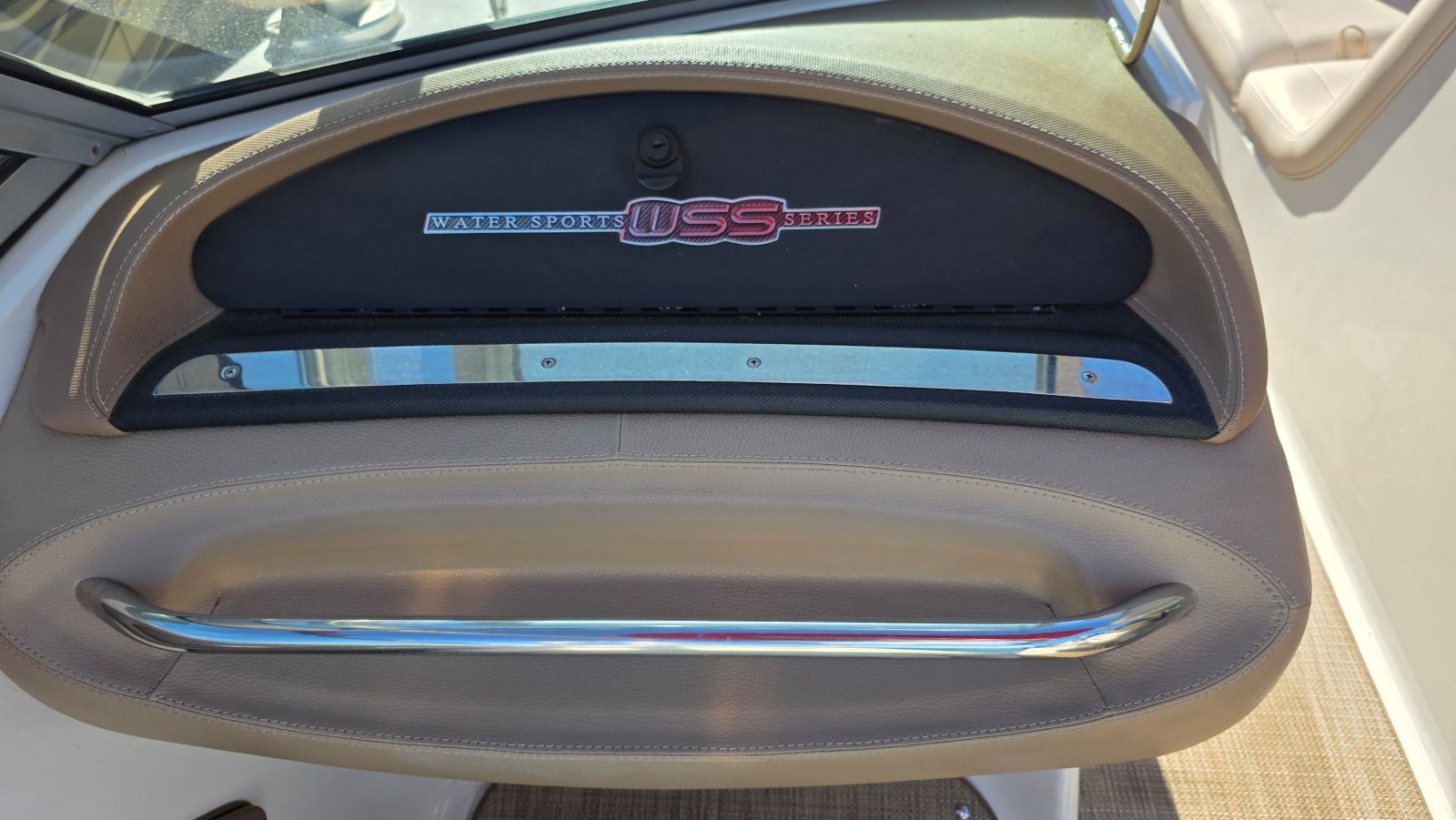 Presenting the Water Sports Series, an option package designed expressly for wakeboarders. And when fused with the intrinsic advantages of traditional Cobalt models, the wakeboarding value of a sterndrive is obvious: no need to add ballast to enlarge the wake when a simple adjustment of the drive trim easily does as much. Water Sports Tower with Bimini Top - From it’s heavy gauge anodized polished aluminum stock to precision machined billet fittings and joints to a fold down design, this tower is pro-athlete strong with lifelong good looks. The perfectly integrated racks to port and starboard carry your four favorite boards in complete security. Solid. Rattle free. Then with a quick release of a swivel lock the racks swing inboard for safe access. Additional options including tower speakers with high-power amplifiers, tower spotlights, and a driver’s rearview mirror expand the water sports experience. Exterior Graphics - The look begins with a split gelcoat hull design available in any combination of standard Cobalt gelcoat colors. Then comes the chrome silver WSS hull crystal cap emblems and transom Water Sports Series badge. And for the finishing touch we’re introducing new three inch black chrome COBALT insignias in an edgy chiseled style. Interior Styling - WSS styling continues on the interior with finishing touches that include Water Sports Series badging, and a choice of color matched piping throughout the upholstery. The WSS helm with standard digital instruments & satin dash finish!