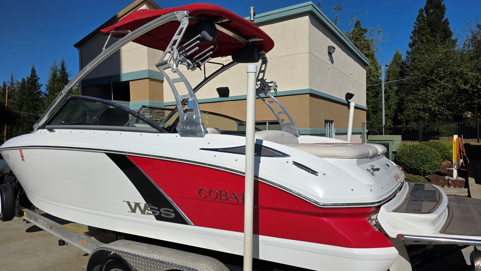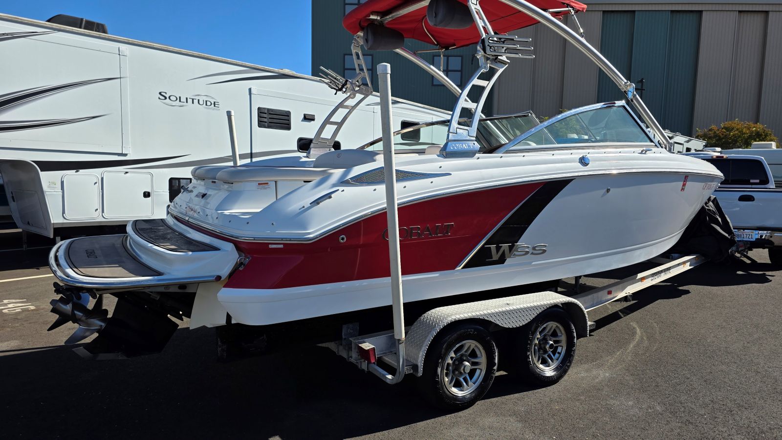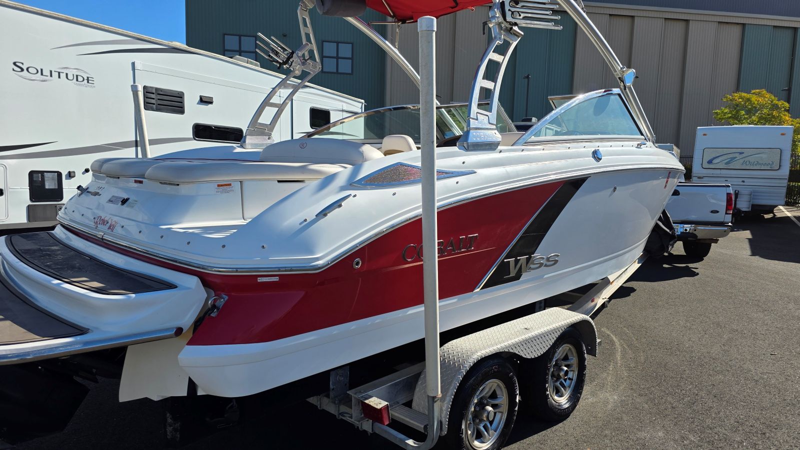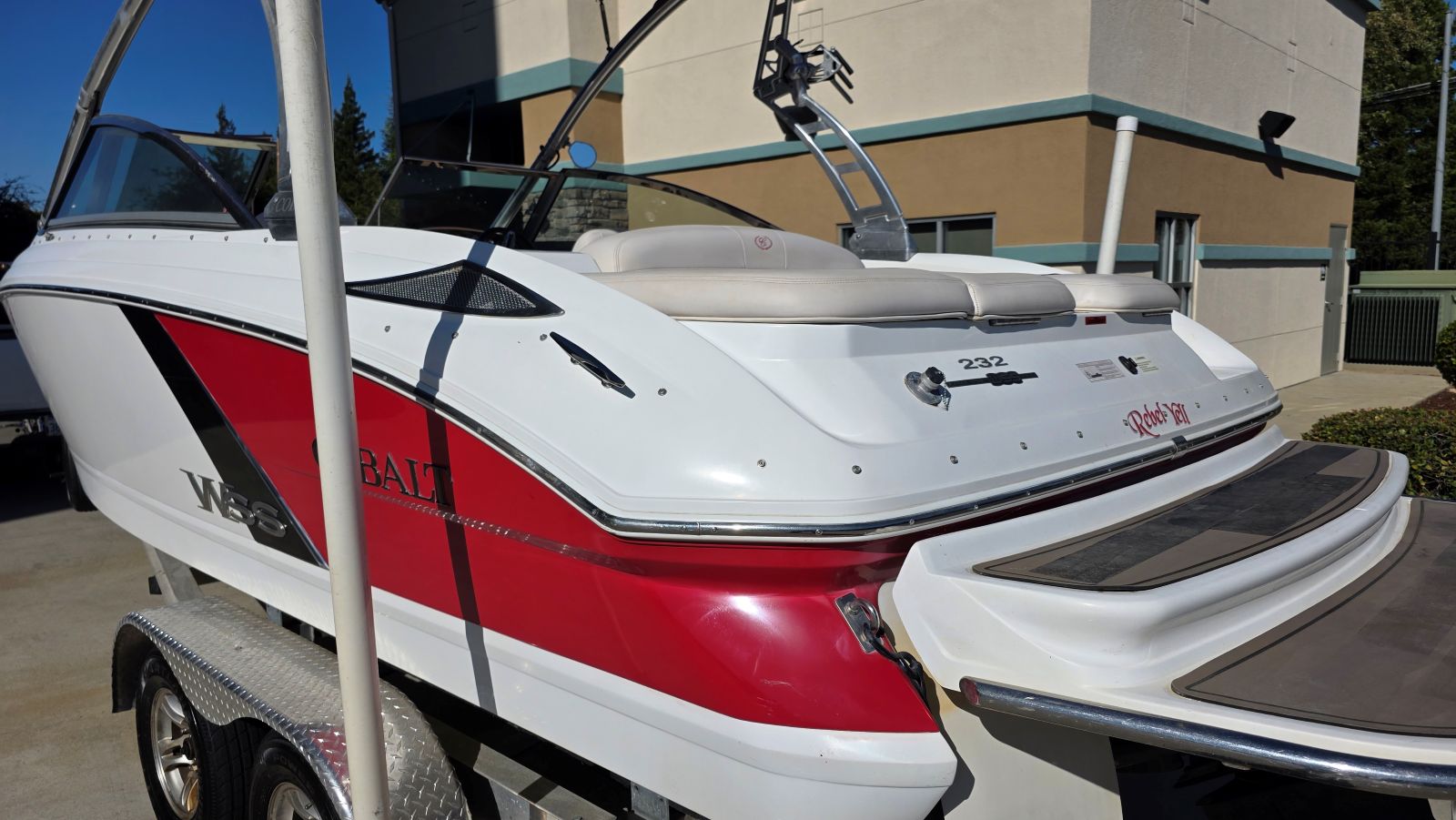 We are offering a very nice, rare, 2014 Cobalt 232WSS. Rare in the sense there are very few, if any, available and none that I am aware of with the HUGE upgrade to a Mercury Marine 8.2HO W/430hp big block! Flick a switch and hear the thunder of her Captains Call Exhaust. Awesome throaty sound unique to a big block. Heavy loads, heavy loads at altitude she’ll barely break a sweat. A perfect size as well. Not too big and not too small makes towing, braking and storing just a bit easier on you and your vehicle. Rated for 12 persons, she offers generous seating & storage! Features and equipment include but are not limited to. Mercruiser 8.2MPI HO 430HP, Mercruiser Bravo III Outdrive, Captains Call Exhaust, Switchblade Folding Water Sports Tower, JL Tower Speakers W/Fade Control, Tower Bimini Top, Tower Mirror, Billet Fittings, Swivel Racks W/Lock, Custom Made Mooring Cover, SS Docking Lights, Carbon Tone Dash W/WSS Badges, 6 Speaker Kenwood Sound System Amplifier, Driver & Transom Remotes, Sea Grass Carpet Upgrade A Couple Years Old, LED Cockpit Lights, Dual Batteries W/Switch and Tandem Axle Trailer W/Brakes, Guides & Spare.