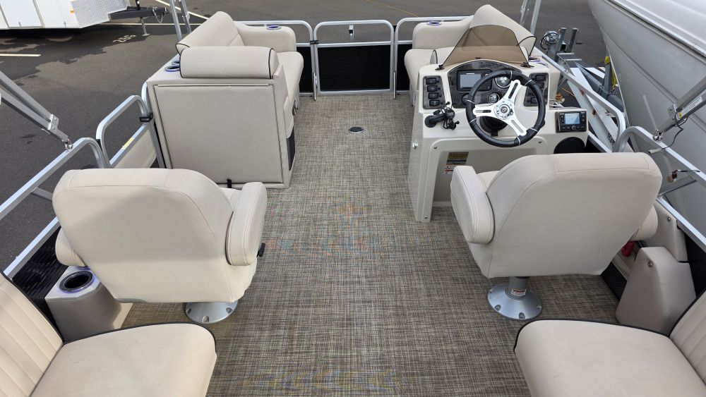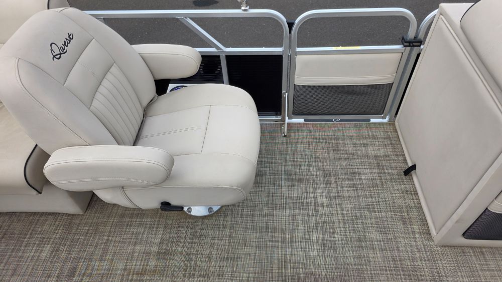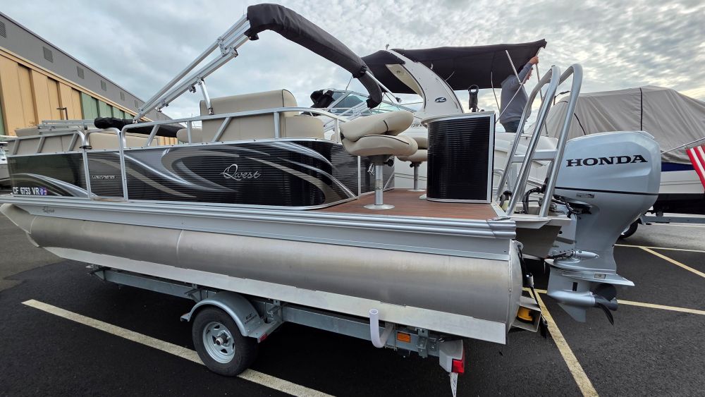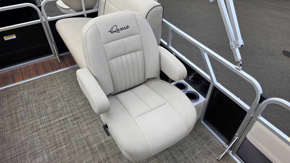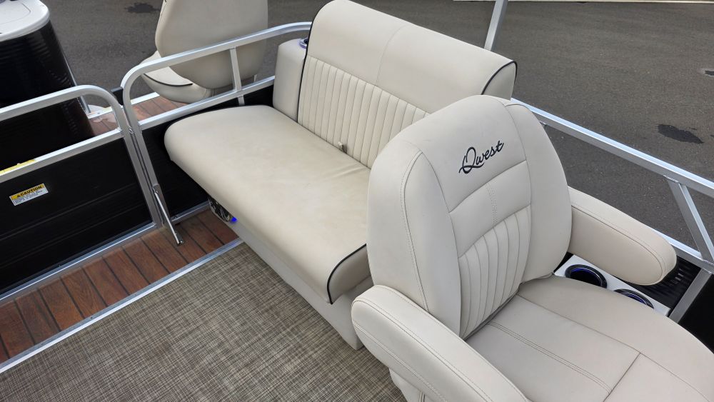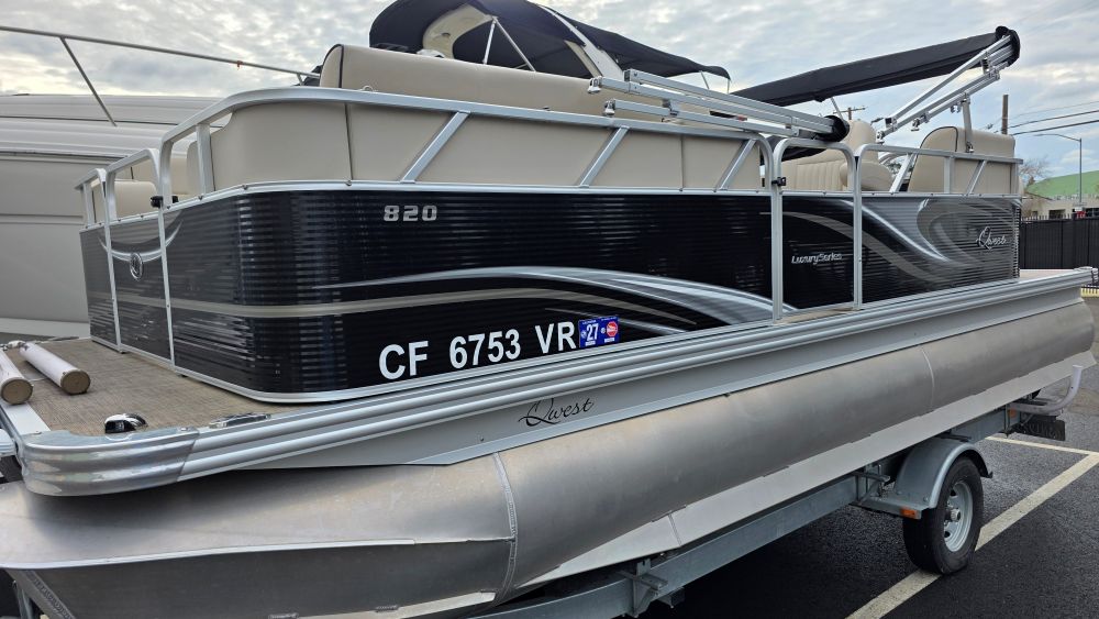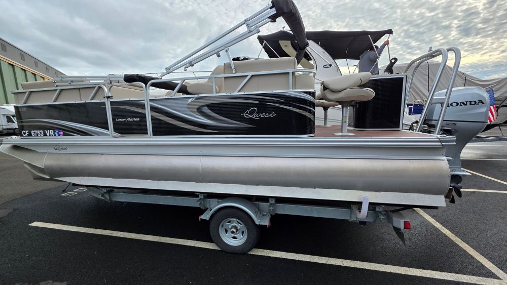 We are offering a very nice original owner Qwest 820 Luxury Series. Ideal seating features front bench seats easily converting to a lounge. Perfect for sunbathing or lounging. A comfortable bucket seat w/pop up armrests support a very well configured helm. Systems & gauges are easy to read and well within reach. Dual rear bench seats and two awesome stern bucket seats complete her layout. She has a cockpit everyone can enjoy relaxing on their favorite seat. Very well taken care of her equipment includes but are not limited to; Honda 90HP Four-Stroke W/150 hours (103 hours @1000 rpm's), custom factory tow bar, trailer w/bow boarding ladder, side guides, spare tire & brakes, Humminbird depth/fishfinder, Infinity sound system w/USB-AUX ports, bow cockpit dinette table, Ram Mount cell phone holder, lighted stainless steel cupholders, LED docking lights, dedicated circuit breakers next to rocker switches, woven flooring, lifting-stability strakes, stern livewell and rod holders.
