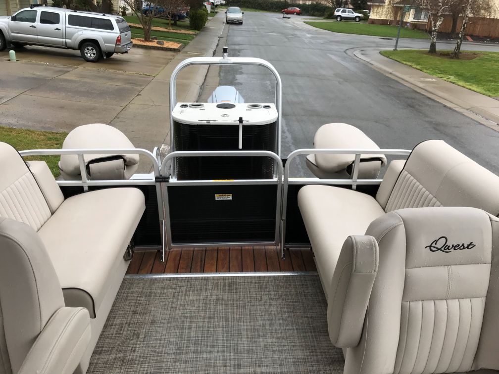 We are offering a very nice original owner Qwest 820 Luxury Series. Ideal seating features front bench seats easily converting to a lounge. Perfect for sunbathing or lounging. A comfortable bucket seat w/pop up armrests support a very well configured helm. Systems & gauges are easy to read and well within reach. Dual rear bench seats and two awesome stern bucket seats complete her layout. She has a cockpit everyone can enjoy relaxing on their favorite seat. Very well taken care of her equipment includes but are not limited to; Honda 90HP Four-Stroke, custom factory tow bar, trailer w/bow boarding ladder, side guides, spare tire & brakes, Humminbird depth/fishfinder, Infinity sound system w/USB-AUX ports, bow cockpit dinette table, Ram Mount cell phone holder, lighted stainless steel cupholders, LED docking lights, dedicated circuit breakers next to rocker switches, woven flooring, lifting-stability strakes, stern livewell and rod holders.