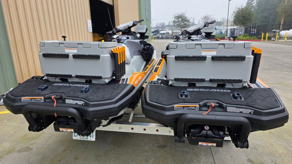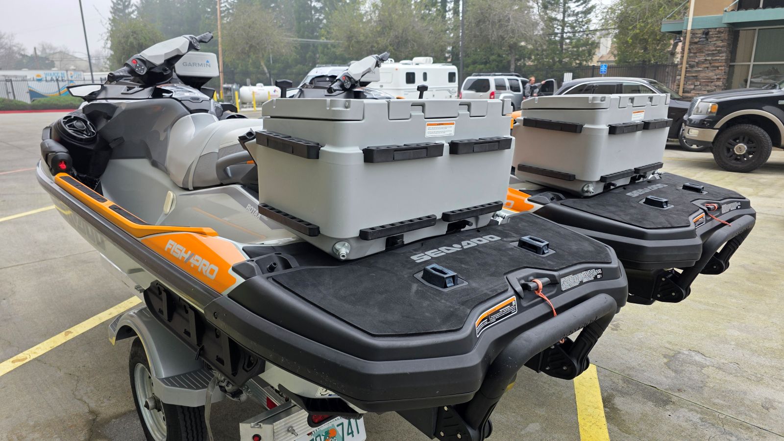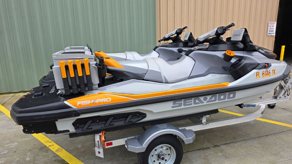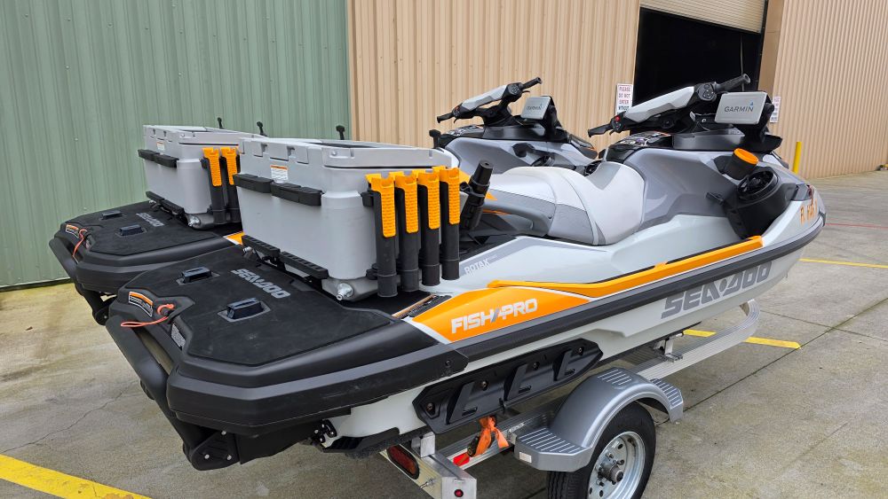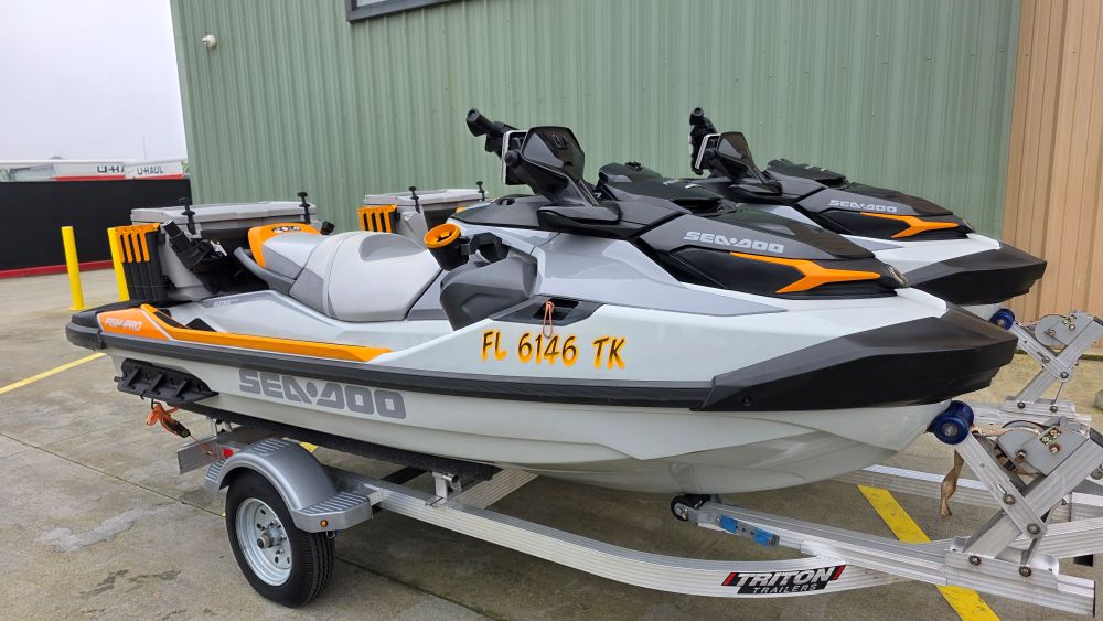 We are offering a pair of 2022 Sea-Doo Fish Pro Trophy 170s on a double trailer. Both units are in excellent condition, lightly used, and professionally maintained. Powered by Sea-Doo’s Rotax 1630 ACE 170HP engines, these PWCs deliver outstanding reliability, efficiency, and offshore-capable performance. Built on the ultra-stable ST3 hull, they are ideal for fishing, cruising, and exploring shallow or hard-to-reach areas. Each Fish Pro Trophy comes factory-equipped with the full fishing package, including Garmin fishfinder/GPS, LinQ fishing cooler with rod holders, rear fishing deck, trolling mode, cruise control, and iBR braking and reverse. Comfortable touring seats, large storage capacity, and premium finishes make them perfect for long days on the water. This is a turn-key setup — two identical, fully equipped fishing PWCs on a double trailer, perfect for a family, friends, or guided use. Hard to find in this condition and configuration.
